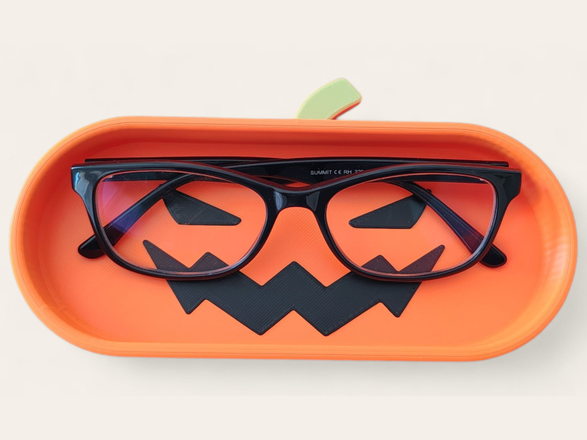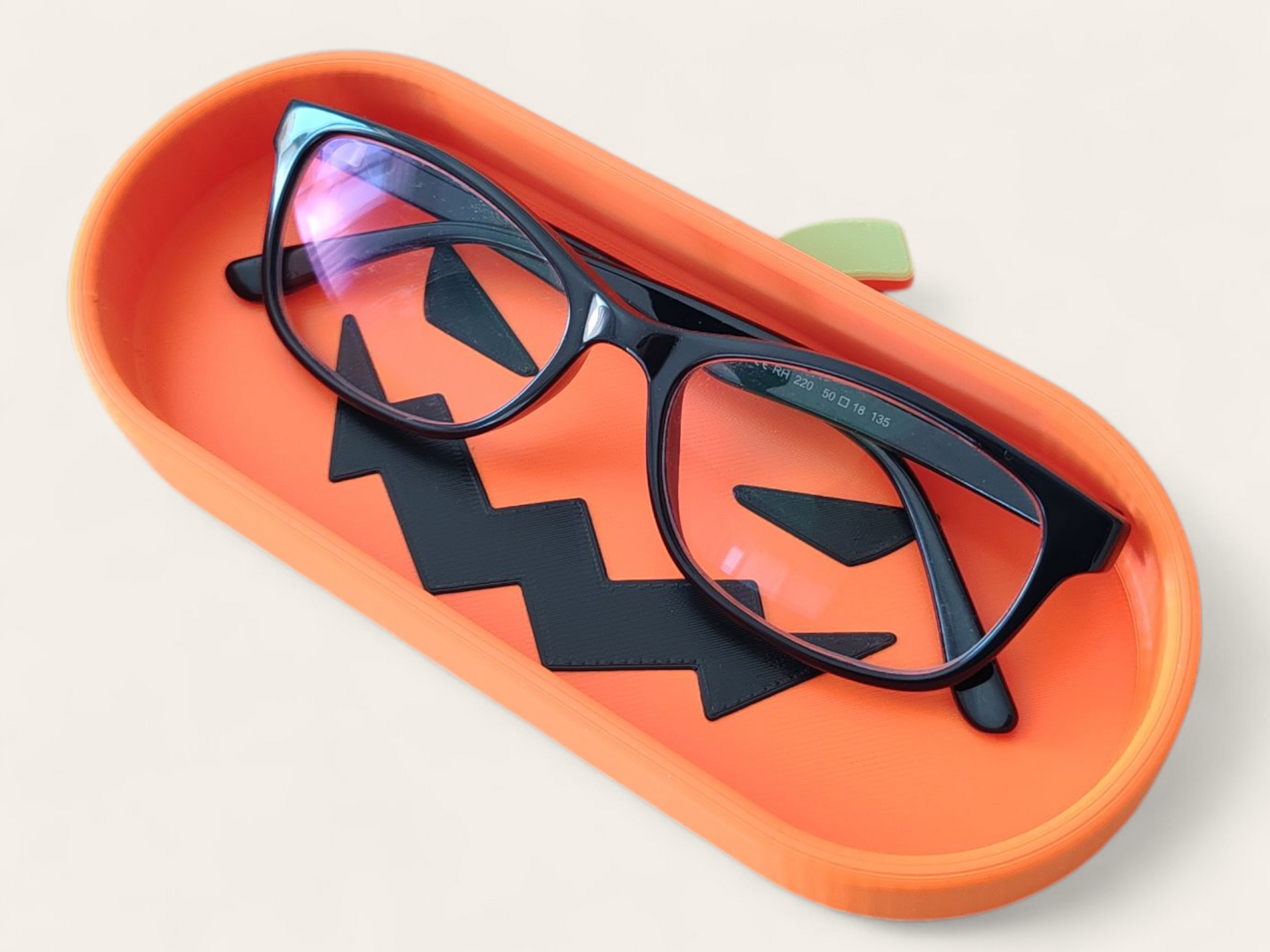 Bandeja para gafas con diseño de calabaza de Halloween, de estilo decorativo y temático.