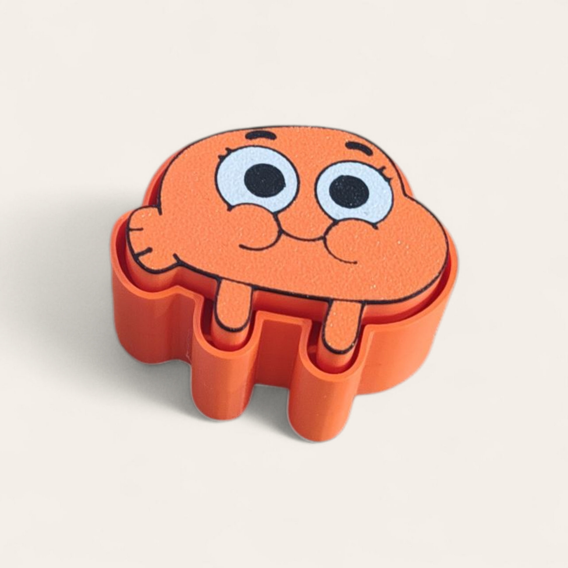 Clicker llavero inspirado en personajes de la serie The Amazing World of Gumball, como Gumball Watterson y Darwin Watterson. Cada clicker incorpora una tecla mecánica interna que emite un sonido clicky al pulsar, ofreciendo una experiencia desestresante, táctil y muy satisfactoria.