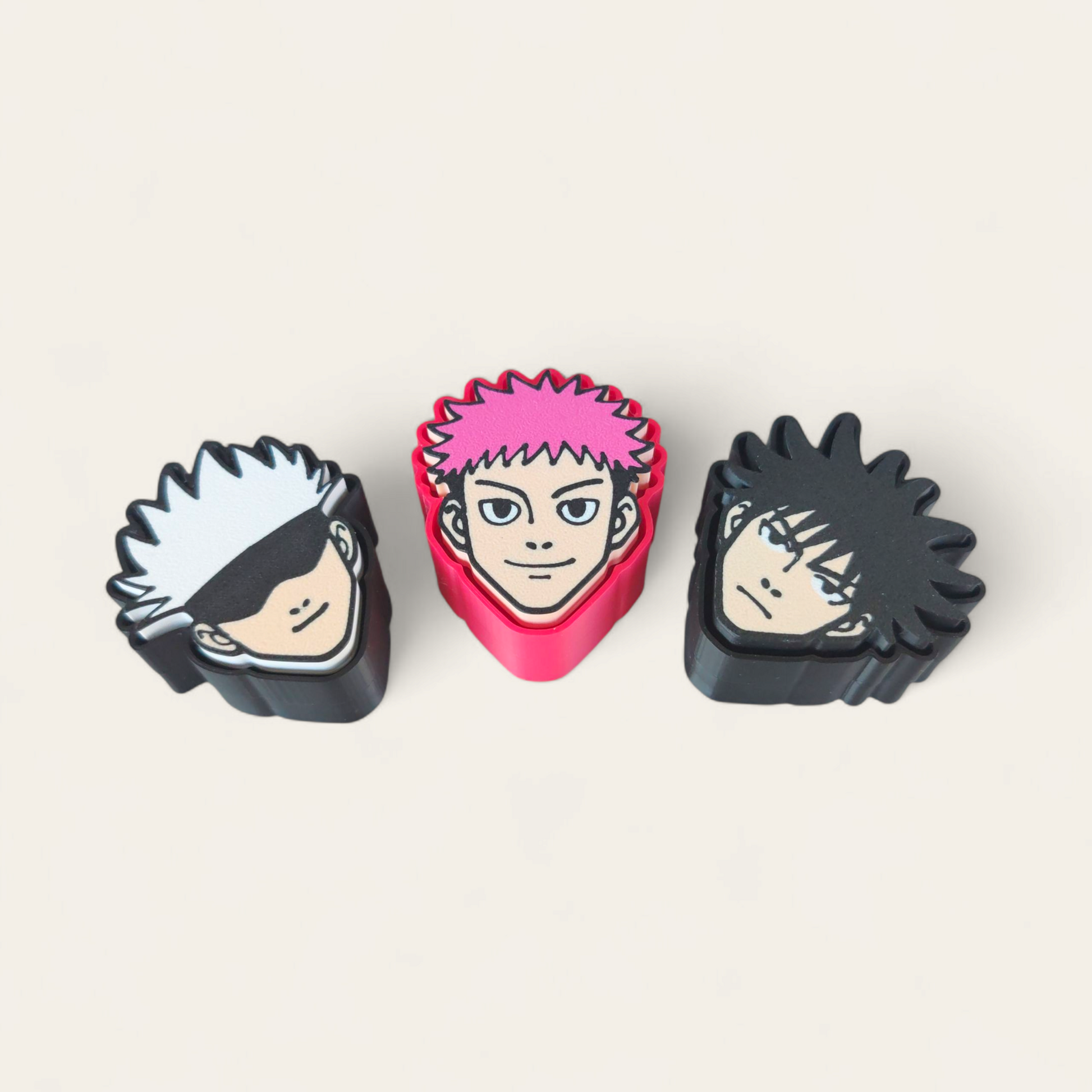 Clicker llavero inspirado en personajes del anime Jujutsu Kaisen, como Satoru Gojo, Yuji Itadori y Megumi Fushiguro.