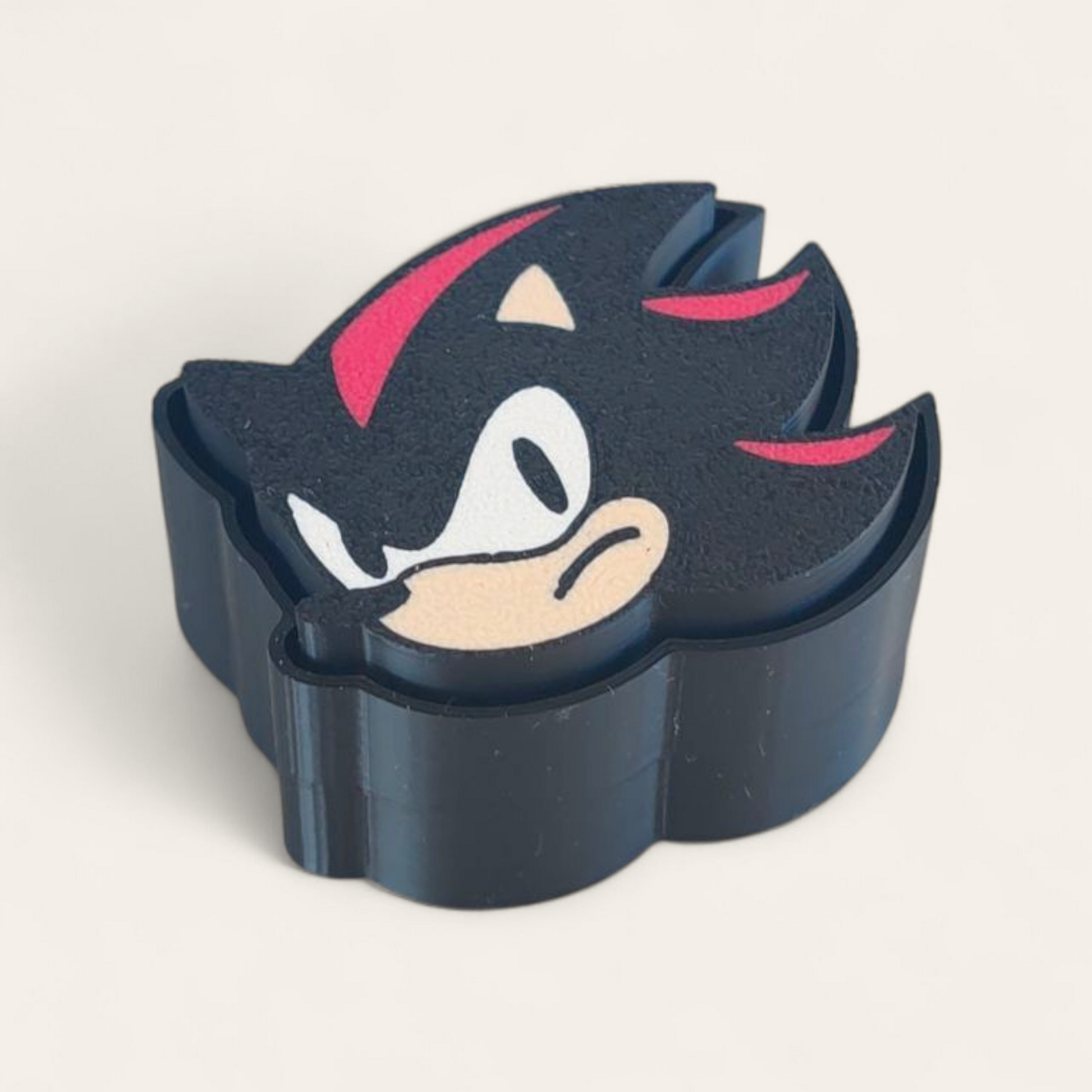 Clicker llavero inspirado en personajes del universo Sonic, con diseños que representan a Sonic, Shadow, Tails y Knuckles. Cada clicker incorpora una tecla mecánica interna que emite un sonido clicky al pulsar, ofreciendo una experiencia desestresante, táctil y muy satisfactoria.