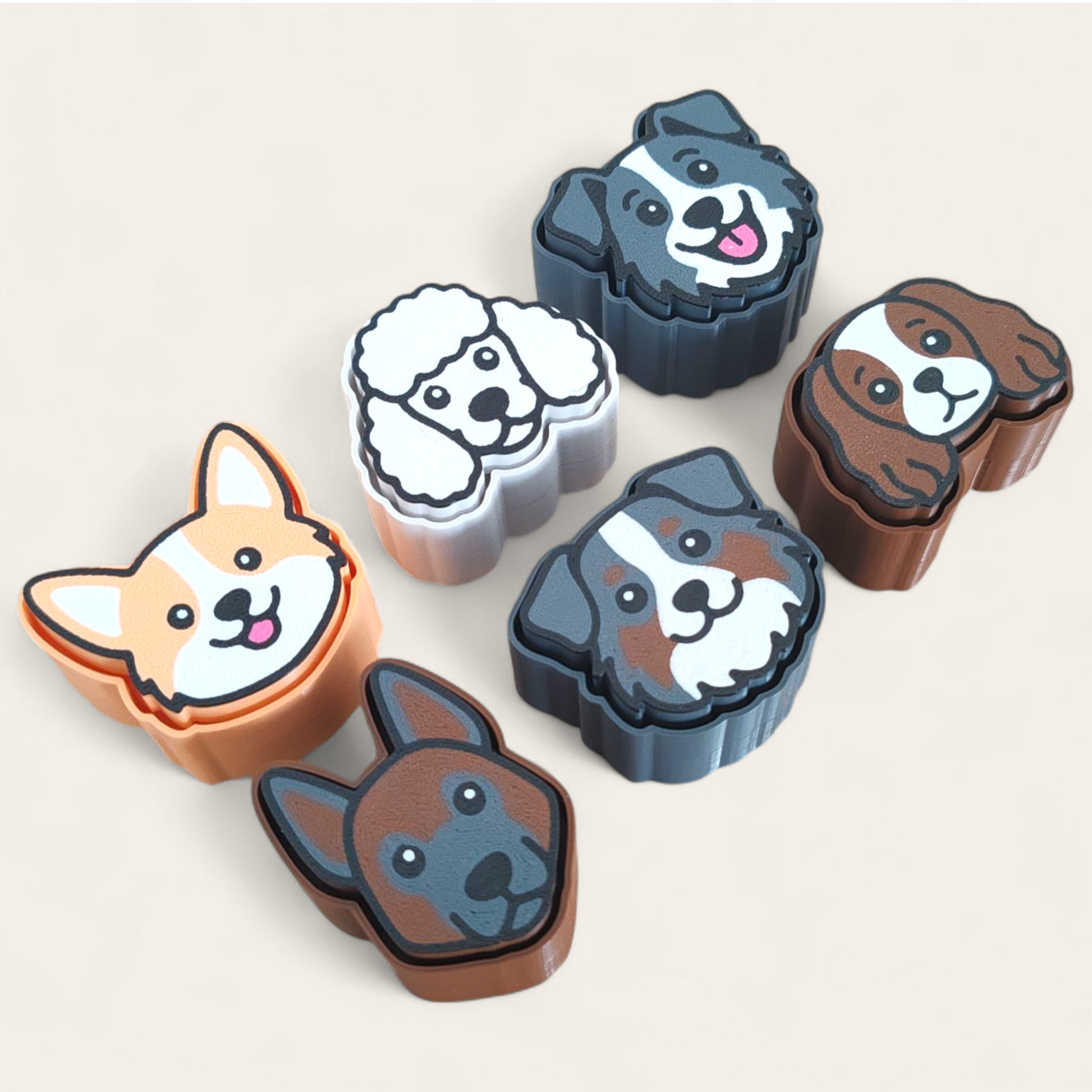 Cada modelo representa una raza de perro diferente y todos incluyen llavero, ideales para llevar en las llaves, mochila o usar sobre el escritorio. Perfectos para amantes de los perros, para liberar tensión o simplemente disfrutar del característico click.