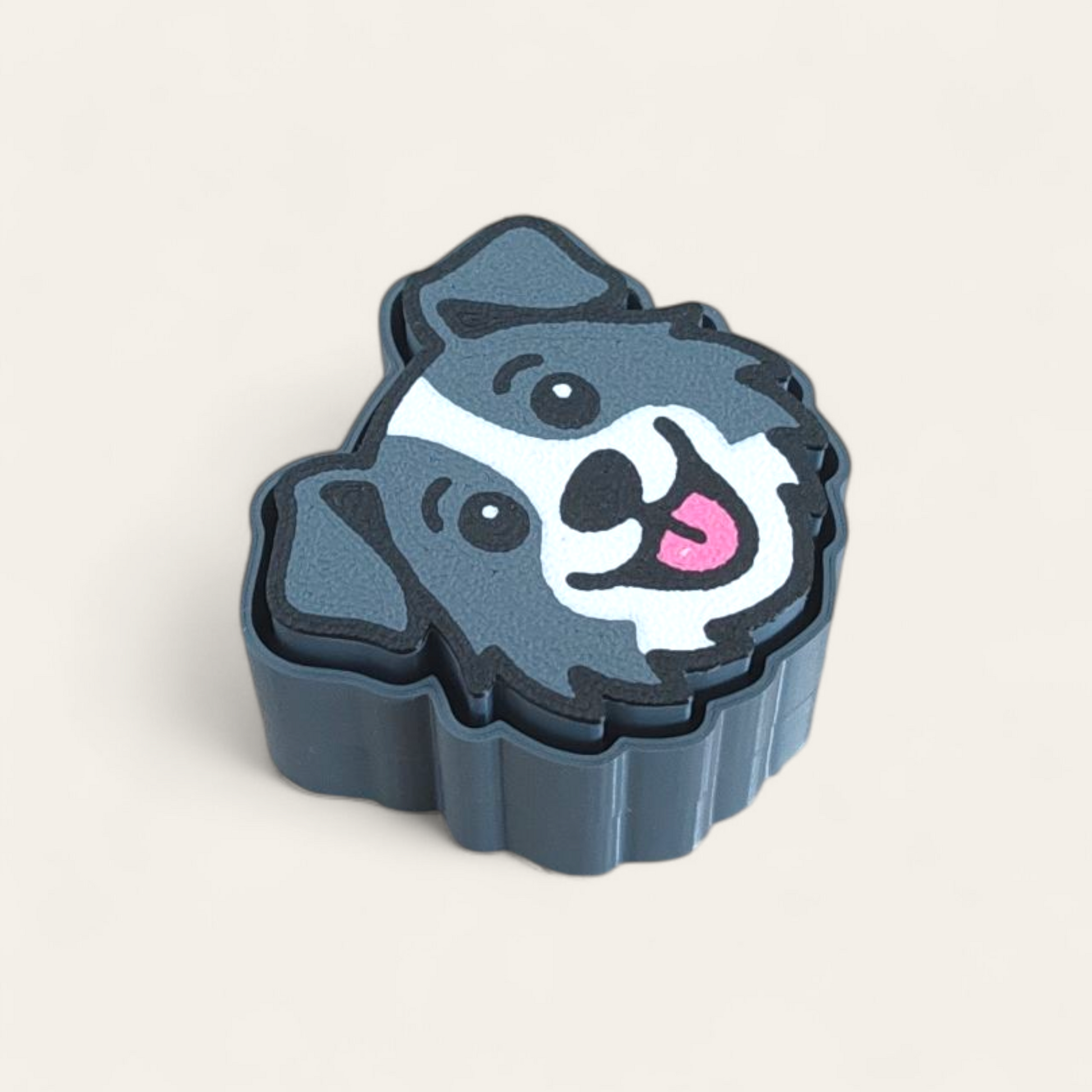 Clicker llavero con diseño de perros en estilo kawaii, equipado con una tecla mecánica interna que emite un sonido clicky al pulsar. Diseñado para tocar, pulsar y desestresar, ofrece una experiencia táctil agradable y muy satisfactoria.